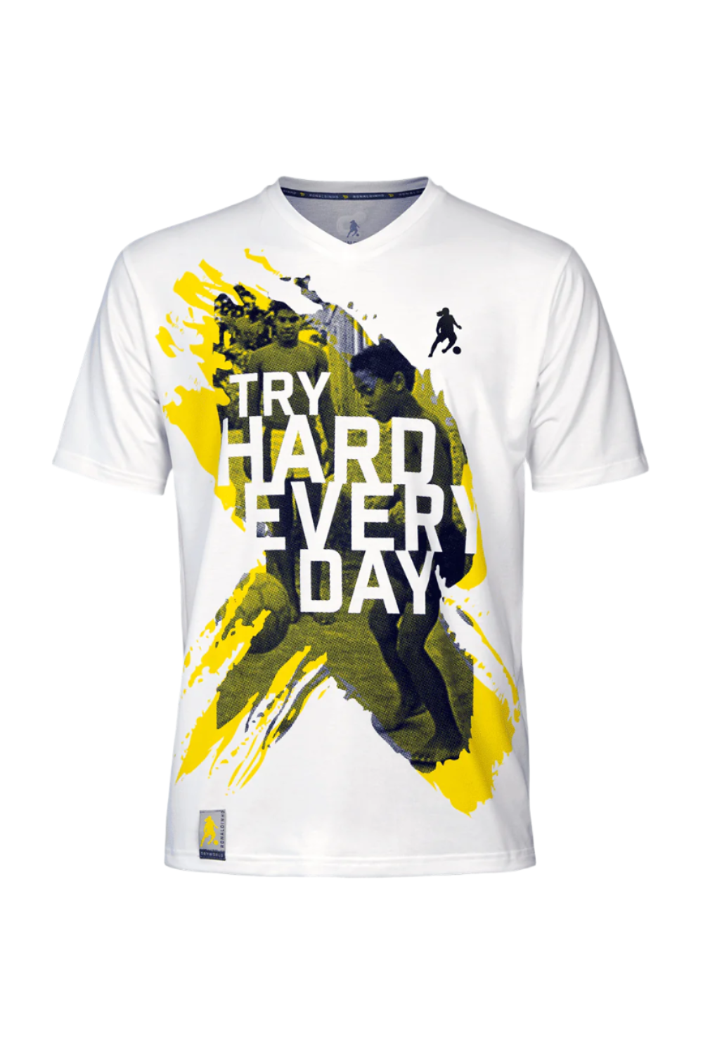 Try Hard Every Day 💥 Get inspired by the legend himself! This tee features a young Ronaldinho and his brother, captured in a timeless moment of pure passion for the game ⚽. With the words "Try Hard Every Day" emblazoned across the image, it's a powerful reminder that greatness is earned through dedication, hustle, and heart.